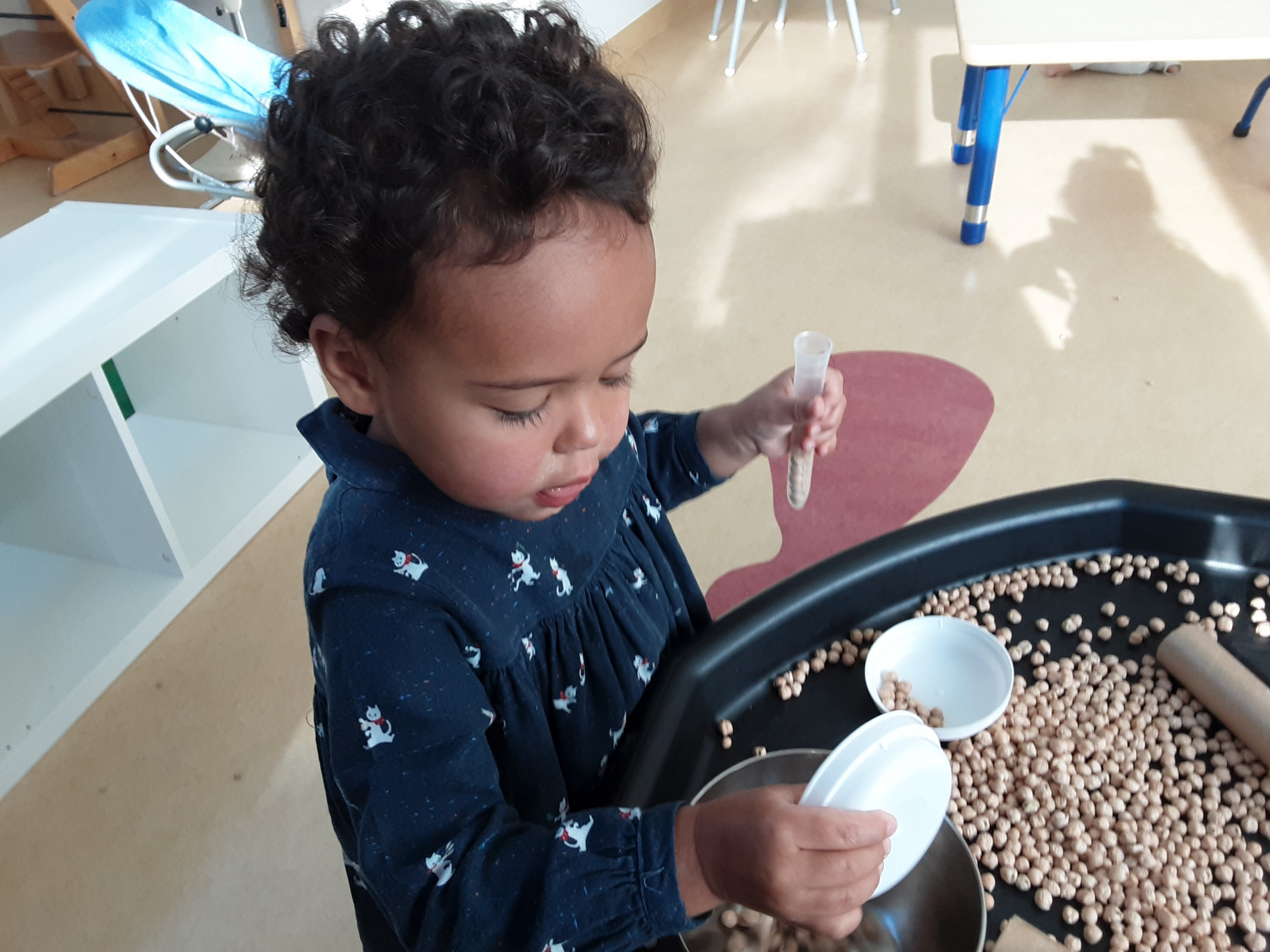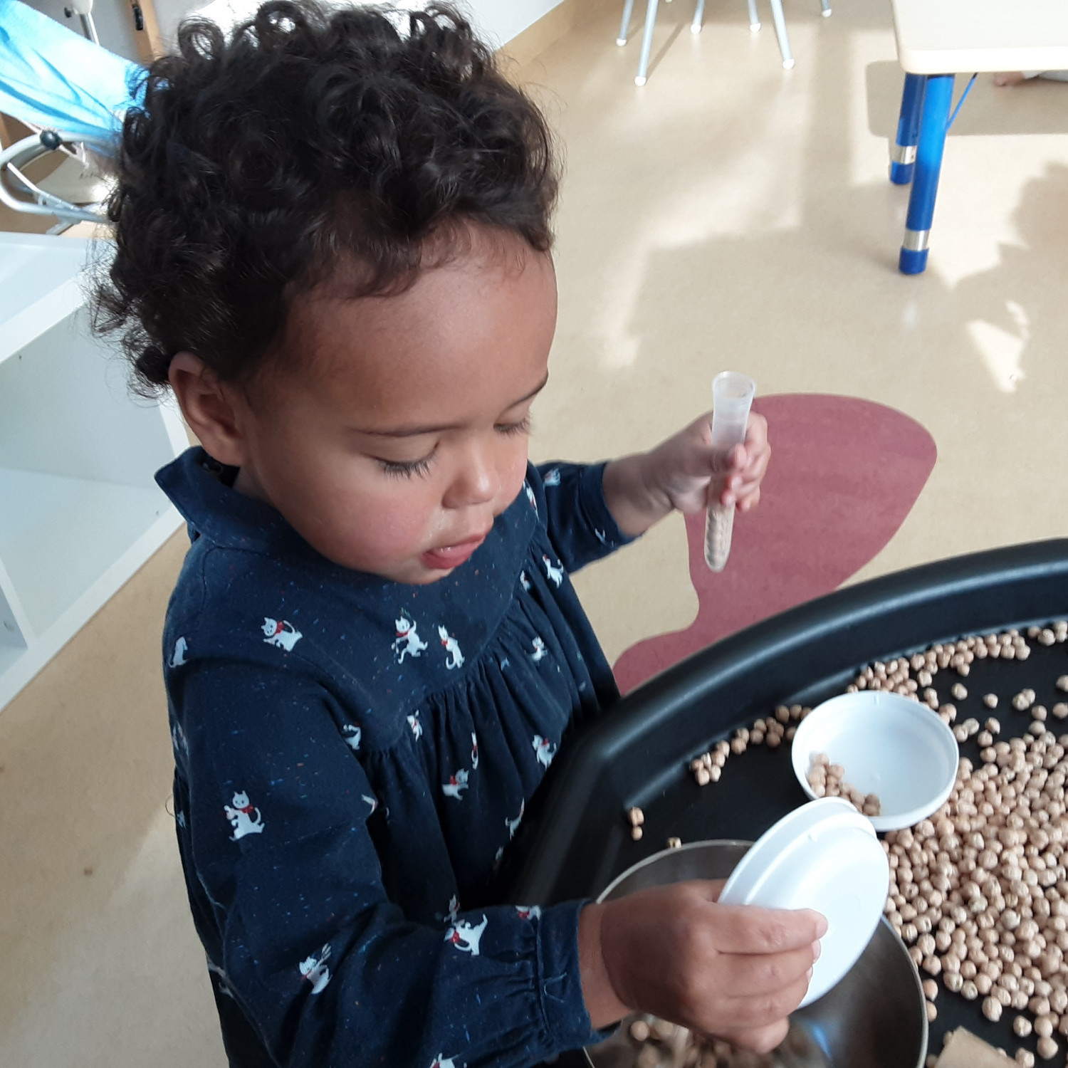 Om tot gericht spel te komen zorgen we ervoor dat onze speelruimten voldoende uitdagend ingericht zijn. We kiezen voor neutraal ingerichte ruimte zodat de aandacht ligt op het spelmateriaal en niet de omgeving. Een uitnodigende presentatie van materiaal zorgt voor meer focus en betrokkenheid en stimuleert de exploratiedrang.